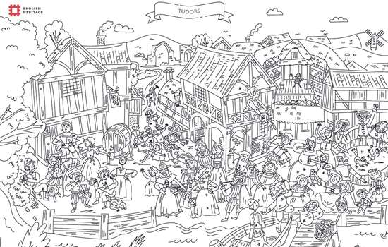 We've created a series of posters showing how people lived in England through the ages, like this one showing life in Tudor England.