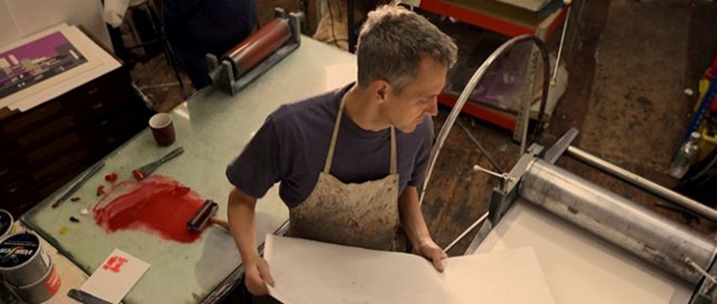Today the renowned printmaker and illustrator is celebrated for his clean, sharp linocuts of architectural landmarks including Big Ben, Brooklyn Bridge and Battersea Power Station. He’s also designed for Transport for London, British Airways, Marks & Spencer, Bloomsbury and Harper Collins.