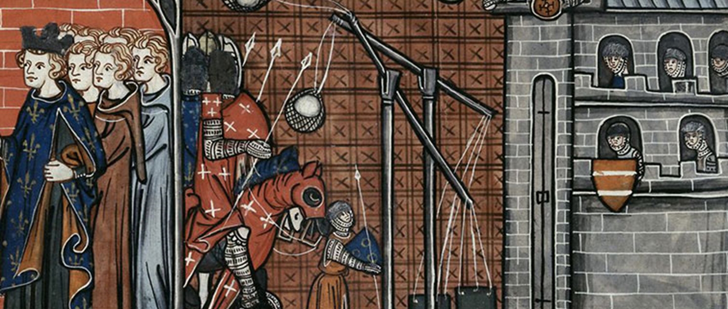 Header Image: Stone balls being hurled at a castle by a siege engine similar to the trebuchets used at Kenilworth in 1266. From a French manuscript circa 1340.