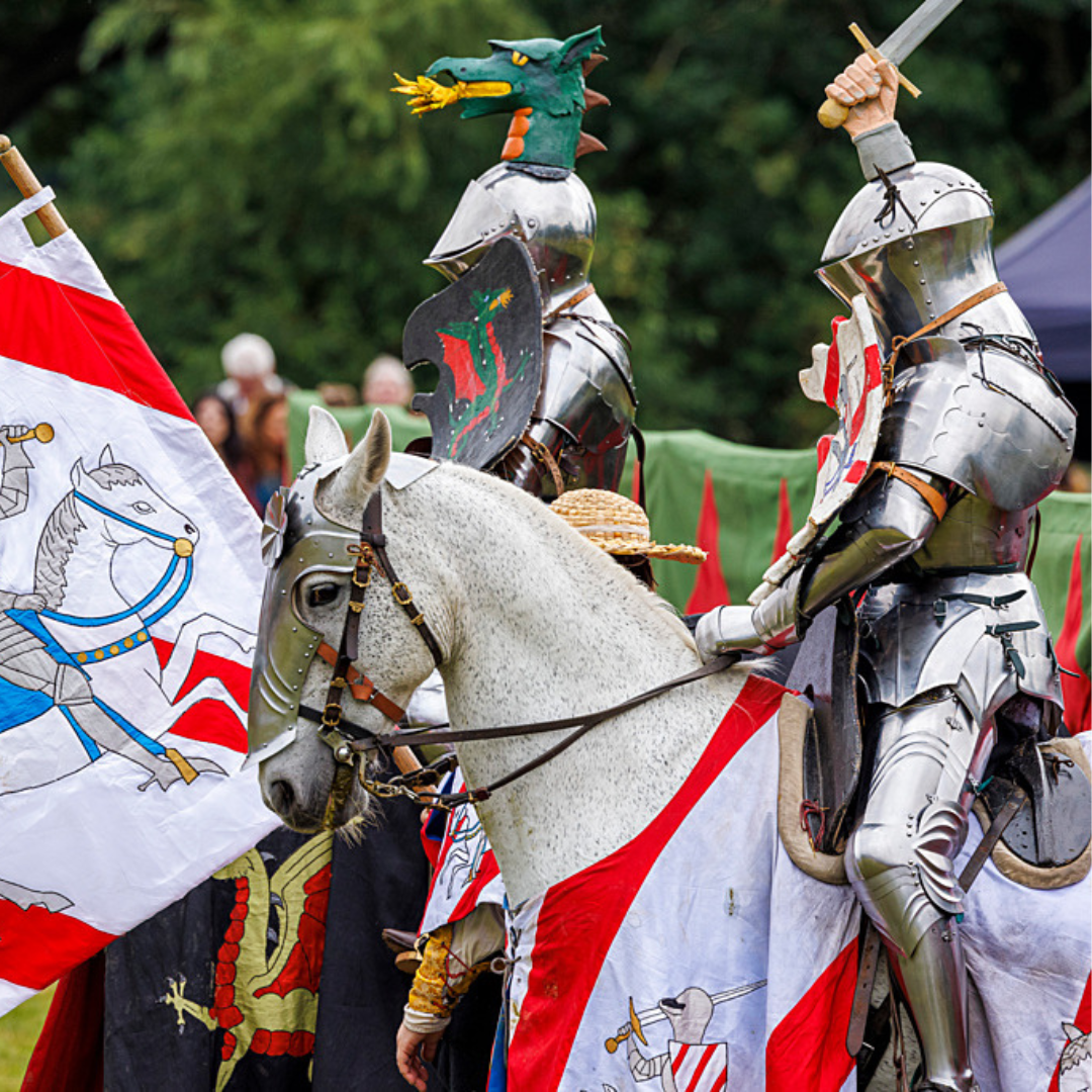Experience the exhilarating spectacle of speed and skill as four legendary knights compete for honour and glory in the grand medieval joust. See lances shatter, feel the thunder of hooves and hear the roar of the crowd as reputations are won and lost.