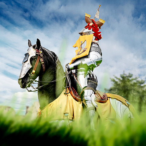 Experience the exhilarating spectacle of speed and skill as four legendary knights compete for honour and glory in the grand medieval joust. See lances shatter, feel the thunder of hooves and hear the roar of the crowd as reputations are won and lost.