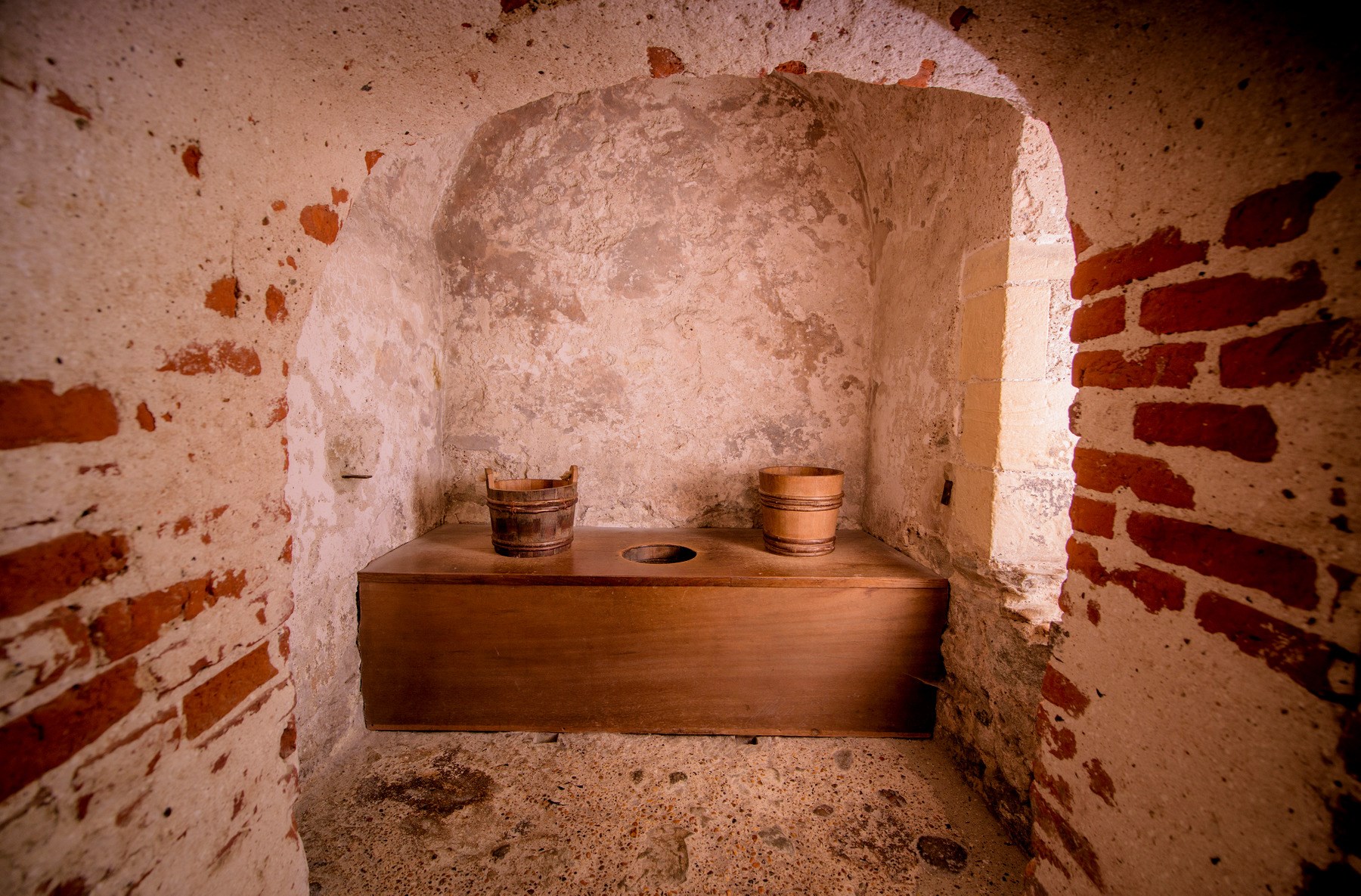 There were no flushing loos in medieval times. Instead, you sat on a stone or wooden board with a hole in it, and the poo (or gong as it was called) dropped through. In castles, loos (also called gongs) were often made to overhang an outside wall, and the poo fell either into the moat (if there was one), into a pit outside the wall or just onto the ground.
