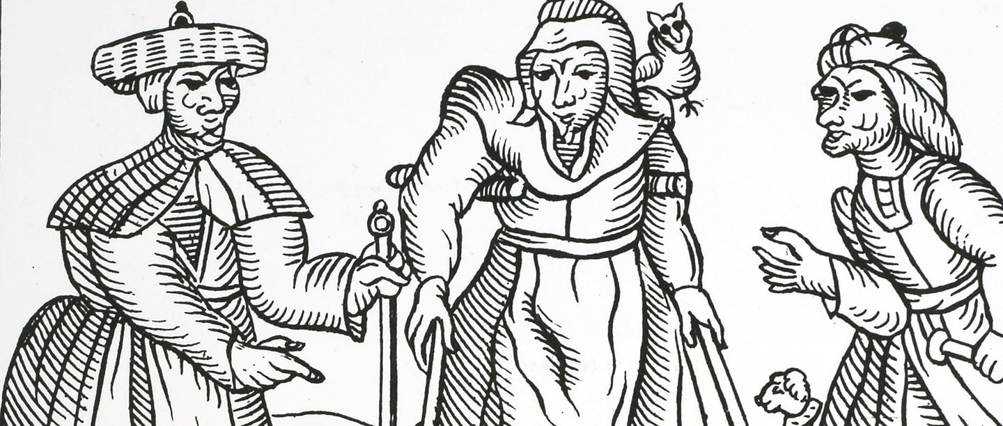 Top image: An illustration from a 1619 pamphlet showing Anne Baker of Bottesford, Joan Willimot of Goodby and Ellen Greene of Stathern, who were all tried for witchcraft (© Hulton Archive/Getty Images)