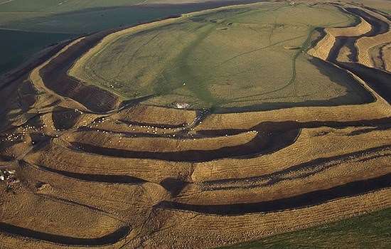 The largest and most complex hillfort in Britain, Maiden Castle was home to several hundred people in the Iron Age (800 BC–AD 43).