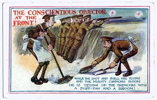 Find out how conscription came about during the First World War, and what happened to the men who applied for exemption.