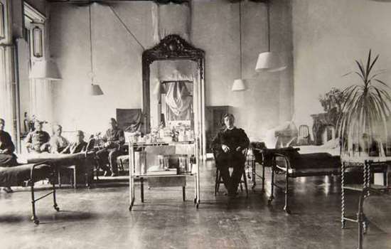 The library at Wrest Park, Bedfordshire, in use as a military hospital during the First World War.