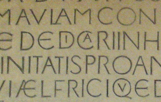 Written communication was further complicated by the use of several different alphabets. The conventional Latin alphabet, as used today, then had several additional Anglo-Saxon letters, related to Germanic runes – whose characters were formed of diagonal and vertical strokes. These represented sounds that were common in Old English, but not found in Latin – like ‘th’ and ‘w’.