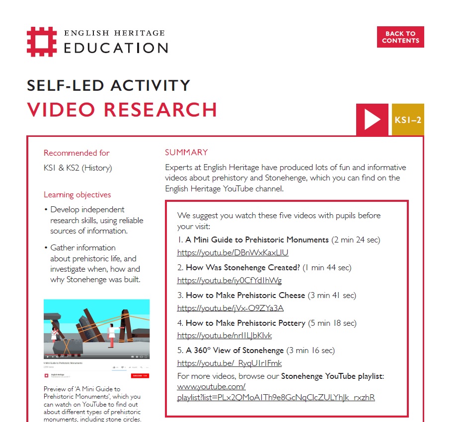 Video Research (KS1-KS2) - Stonehenge Teachers' Kit