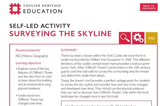 Enjoying spectacular views across the city, students can spot the natural defences provided by the landscape; identify the links between the tallest buildings, and find evidence of York’s industrial heritage.