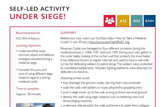 Under Siege! (KS2-KS4+) - Pevensey Castle Teachers' Kit