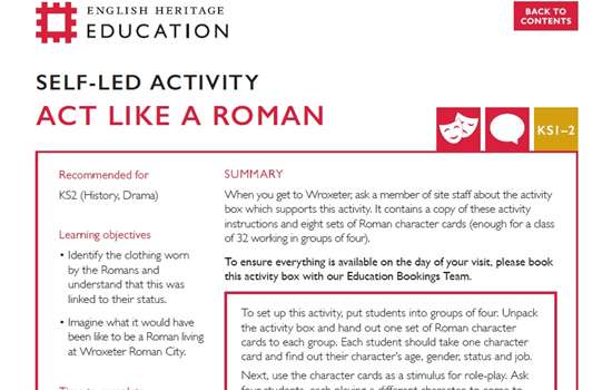 Act Like a Roman (KS1-KS2) - Wroxeter Roman City Teachers' Kit