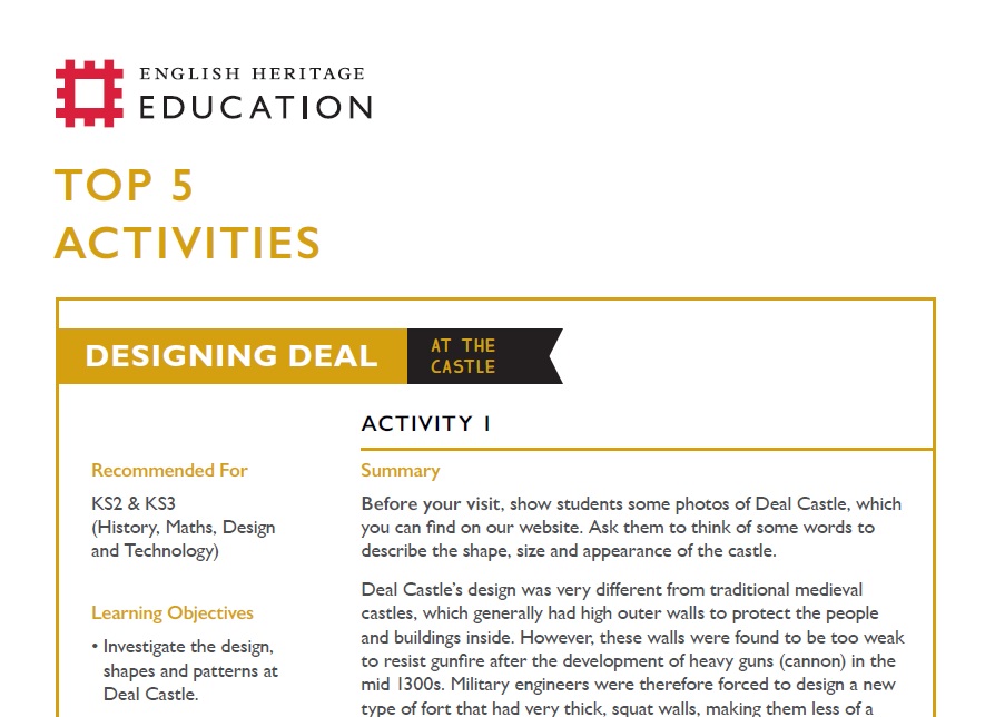 Designing Deal (KS2-KS3) - Deal Castle Teachers' Activity Ideas