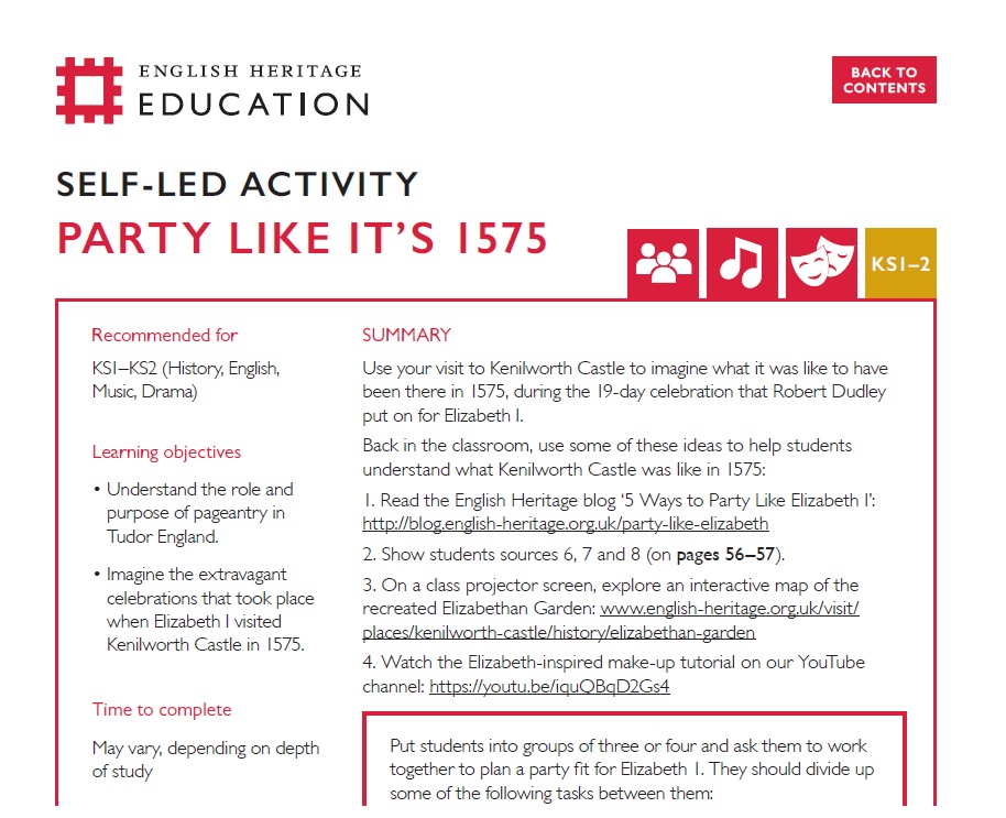 Party Like It's 1575 (KS1-KS2) - Kenilworth Castle Teachers' Kit