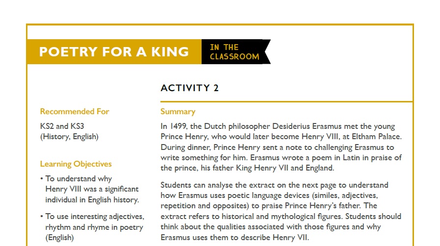 Poetry for a King (KS2-KS3) - Eltham Palace Teachers' Activity Ideas