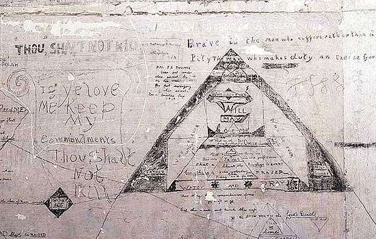 The Victorian barrack block was demolished in 1931. During the Second World War the roof of the keep was used to watch for enemy activity in the area, while the keep itself was used as a daylight air raid shelter. In 1940 the cell block was once again used to detain prisoners, although these were soldiers rather than conscientious objectors.[24] Many of them also pencilled drawings and inscriptions on the cell walls.