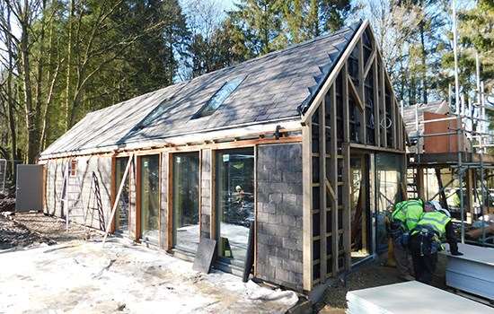 The roof slates were fixed in place during January and now the walls are bring clad.