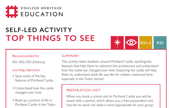 Download our free resources to help you make the most out of your visit and create unique learning experiences before, during and after your trip. We also offer free planning visits once you have made a booking, plus a 20% discount on the official English Heritage guidebook for your place of choice.