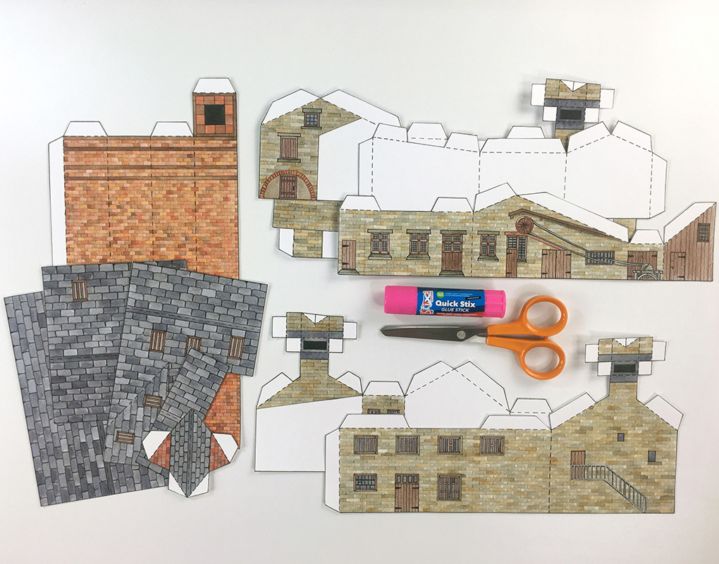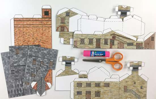 Now you can make your very own model of Stott Park Bobbin Mill. Ask an adult to download the template and print it out for you, then you can follow the instructions below to build the mill.
