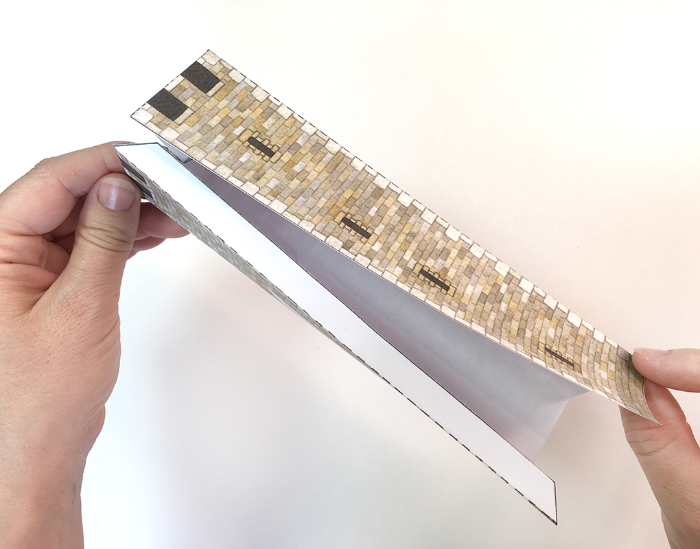 Slide the gallery on to the castle and glue in place. It will fit exactly. For extra security, add some extra tape underneath your model.