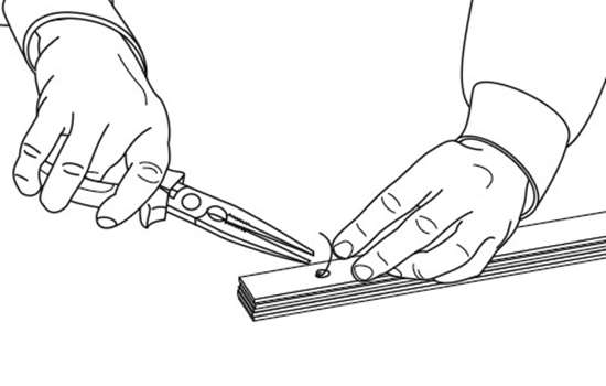 Lay out 10 craft sticks and make a hole in each one, about 3cm from the bottom, using a pin. Thread the pin (or you could use a paperclip instead) through the holes and twist the end with a pair of long nose pliers to secure it.