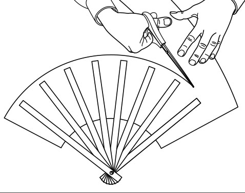 Coat one side of your sticks with glue and then stick them to the paper in the positions you marked out when your drew around them. Cut off the excess paper to form a fan shape.