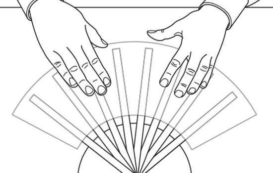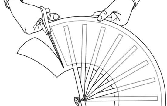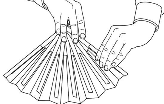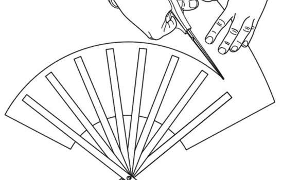 Cut off the excess of the second sheet of paper and glue the edges over at either end of the fan. Lay the fan out flat and, using felt-tip pens or colouring pencils, create your design on it.
