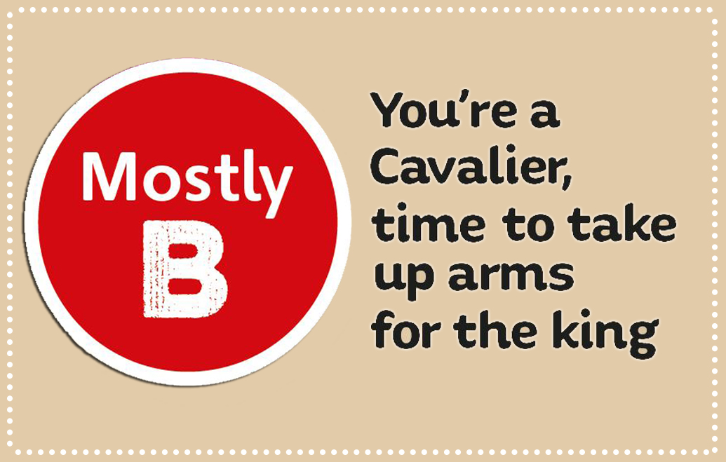 Congratulations on completing the quiz! Now that you know whether you're a roundhead or a cavalier, read Kids Rule! magazine online to learn about who ruled the country and how, the English Civil War, kings on the run and more!