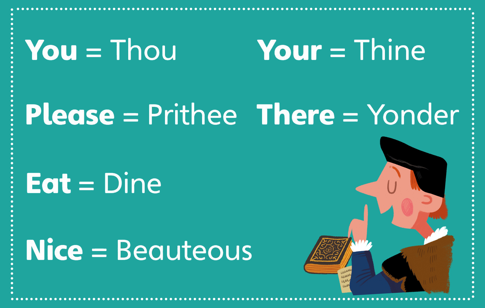 Can you learn to speak like a Tudor? People spoke differently during the Tudor period compared to today. See what sentences you can make using the words above, then test out your new Tudor talk on your family and friends!