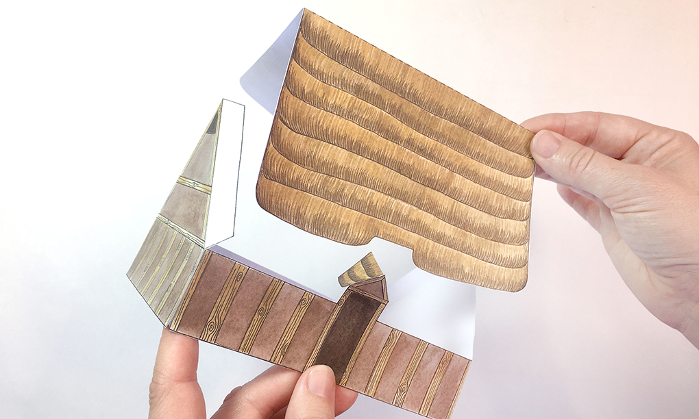 Carefully cut out the two walls and the thatched roof. Ask a grown-up to help if you need to.