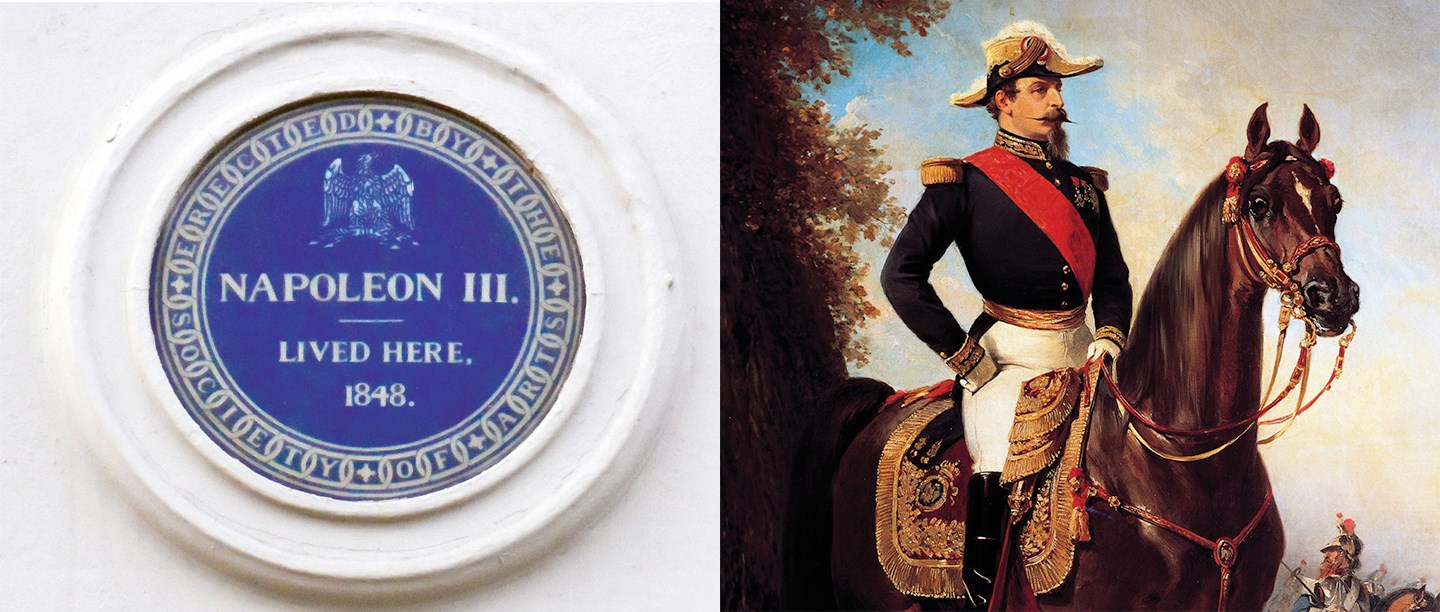 His route to the top may be said to have started at the house in St James' that bears the plaque. It was from here that he departed for France after the overthrow of the Bourbon king Louis Philippe in 1848. He left in such haste that his landlord found the bath still full of water.