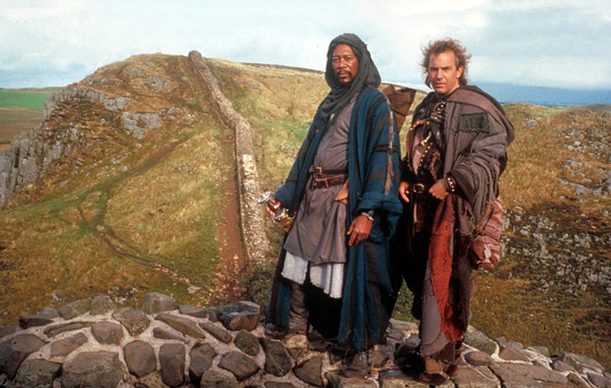 Robin (Kevin Costner) gives directions to Azeem (Morgan Freeman) at Sycamore Gap, which is near Housesteads Roman Fort. Also featured in the film is Old Wardour Castle in Wiltshire.