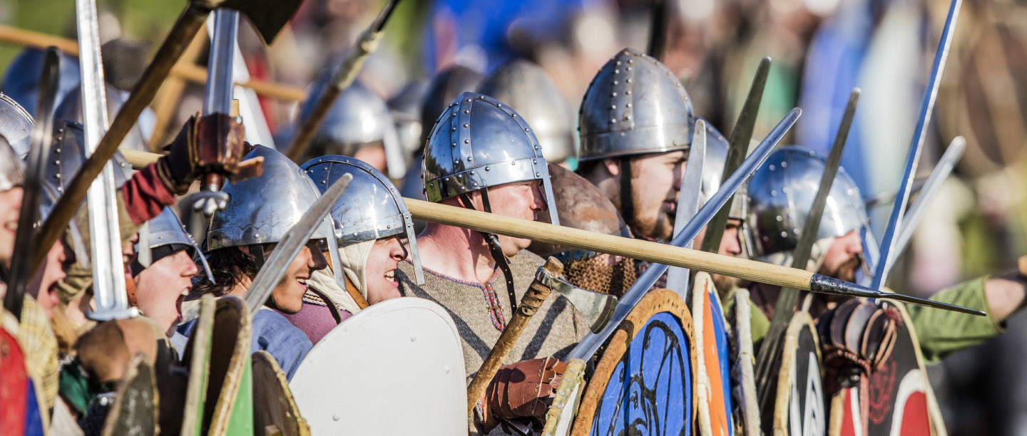 To ensure the realism of the 1066 battle re-enactment, our re-enactors take great care to make their outfits look as authentic as possible. From the weapons to the leather boots and armour, and even the chain mail – or 'maille' – which is painstakingly recreated, the troops on both sides ensure they look the part. You can discover how chain mail is made in this video.