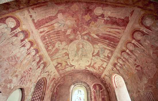 Question 7: At which Gloucestershire church will you find incredible wall paintings such as this one of Christ in the act of benediction?