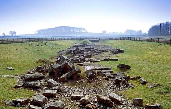 An excavated section, part cut into rock, of the ramparts of the huge Iron Age trading and power-centre of the Brigantes, the most important tribe in pre- Roman northern Britain.