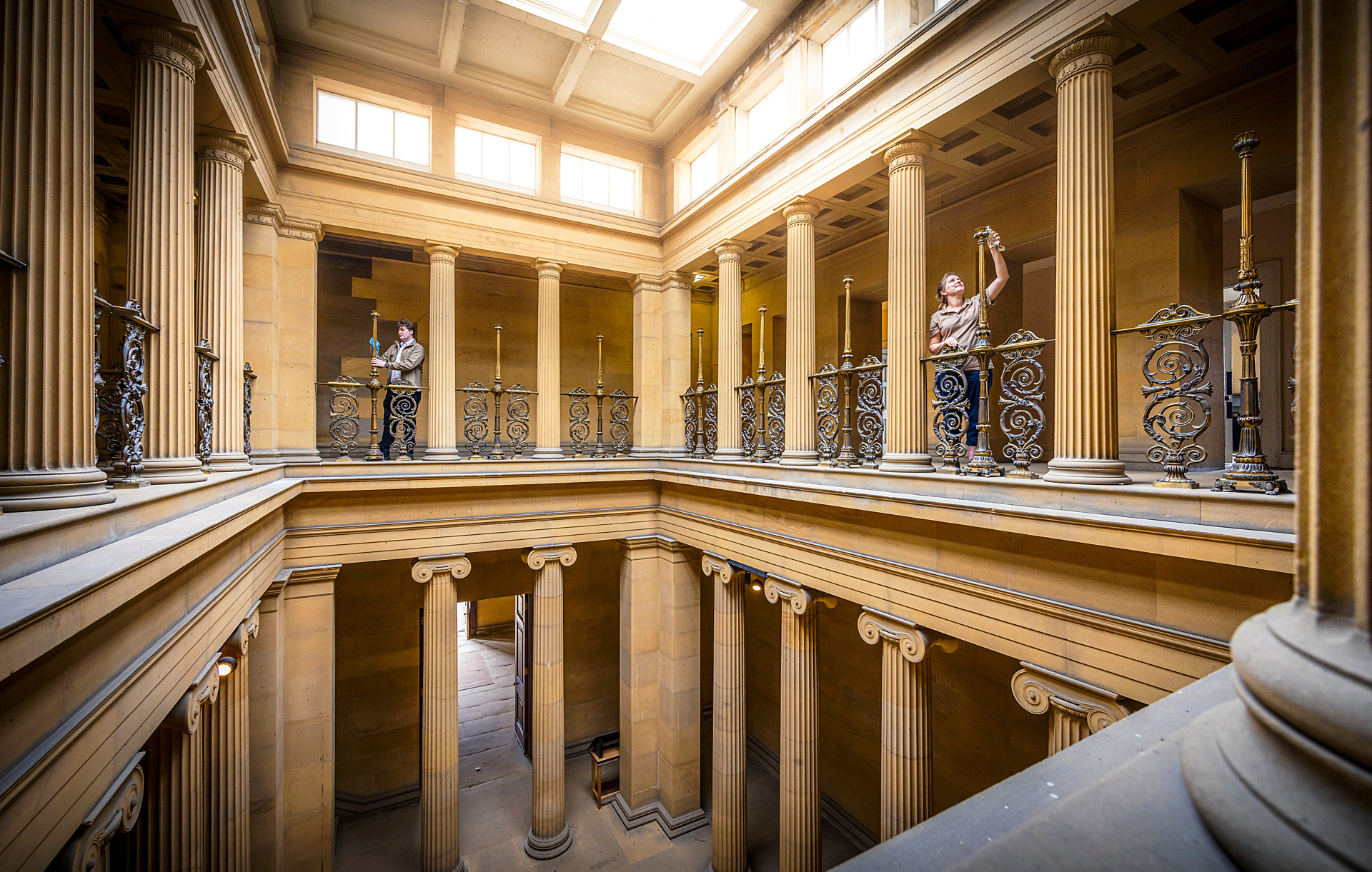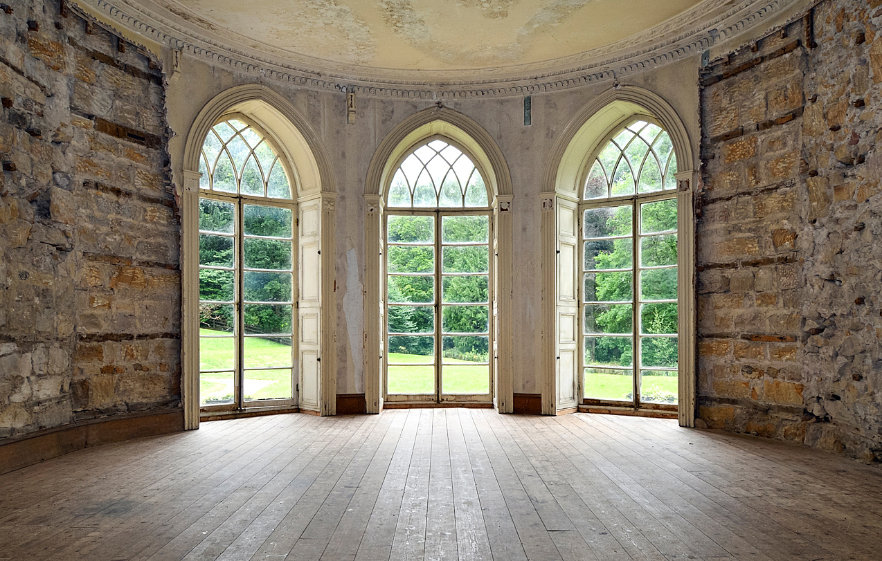 Belsay Hall, a mansion built in Northumberland’s border country in 1817, is the inspiration for the Belsay chimney piece. The Hall is a masterpiece in the Greek Revival style.