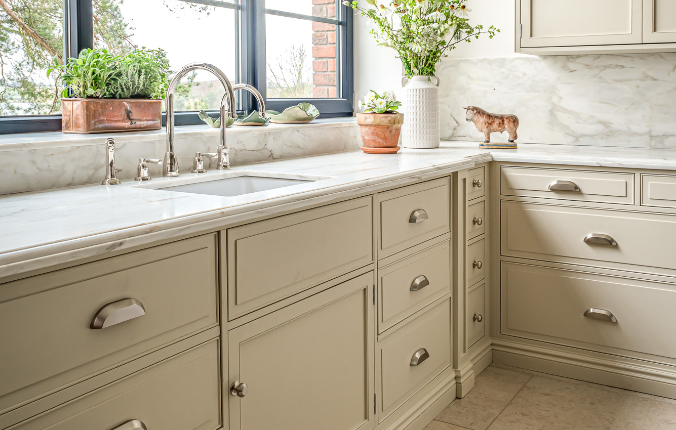 When designing the range of cabinetry, the design team gathered inspiration from many English Heritage historic sites including Apsley House, Down House and Brodsworth Hall. Our creative journey led them to some unexpected sources, from the charming cornice on a maid’s long-forgotten wardrobe to a delightfully panelled window shutter at Darwin’s Down House.
