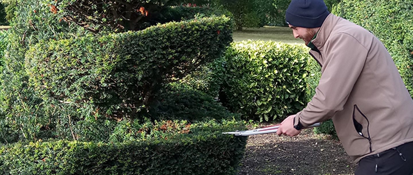 Daniel Hale, Head Gardener at Brodsworth Hall, shows how to clip a topiary form.
