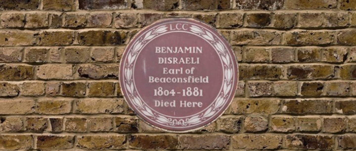 Benjamin Disraeli, Prime Minister twice in the latter half of the nineteenth century, has his life book-ended by one plaque on his supposed birthplace – 22 Theobalds Road, Holborn – and one on the house that he died in – 11 Curzon Street Mayfair.