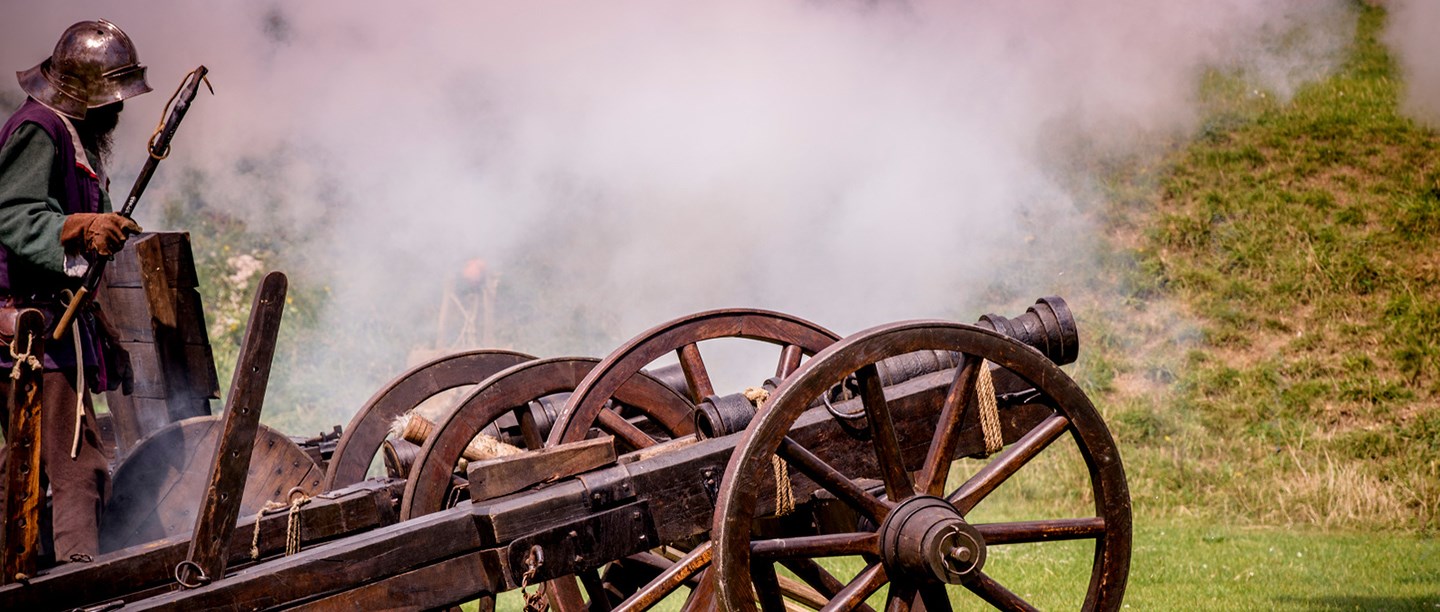 The gunpowder-powered cannon which developed in the later medieval period were more ingeniously-made, but could be more dangerous to users, since they regularly exploded. They were also very difficult to move about. Although used in some sieges (as of Dunstanburgh Castle), early cannons were more effective inside castles, shooting through 'gunports' as in Carisbrooke Castle's gatehouse. Towards the end of the middle ages Berry Pomeroy Castle had gunports angled to mow down attackers in wide swathes, while nearby Dartmouth Castle pioneered heavy 'ship-sinking' guns. Steadily growing safer for users and deadlier to enemies, cannons were the weapons of the future.