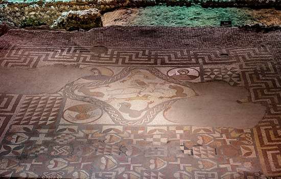 0.5 miles SW of Eynsford, off junction 3 of the M25 Lullingstone is an incredible example of a Roman villa, with mosaics, a bath-suite and more. Perfect in all weathers! There isn't a cafe, but hot and cold drinks (and snacks) are available.
