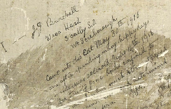 This gallery highlights some of these graffiti, including inscriptions and drawings created by First World War conscientious objectors such as the Richmond Sixteen.