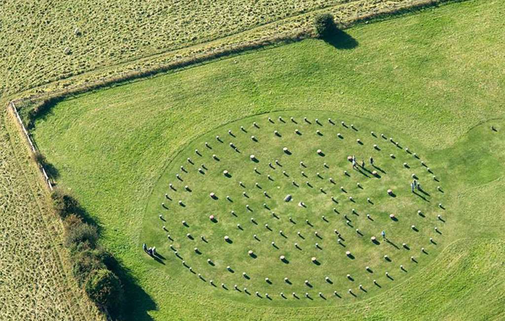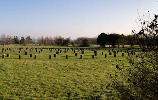 Dating from about 2500 BC, markers now replace rings of timber posts, which once possibly supported a ring-shaped building. Discovered in 1925 when rings of dark spots were noticed in a crop of wheat.