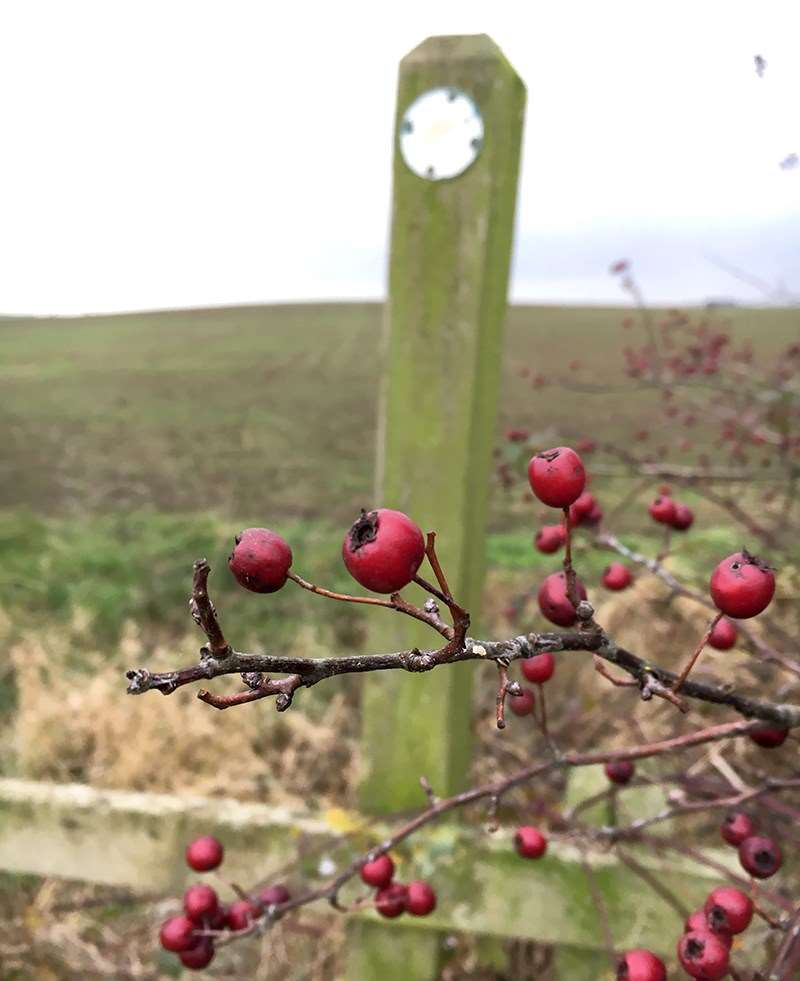 - TERRAIN - Up and downhill through fields. Some sections are steep and there are stiles to climb over - study footwear is advisable.