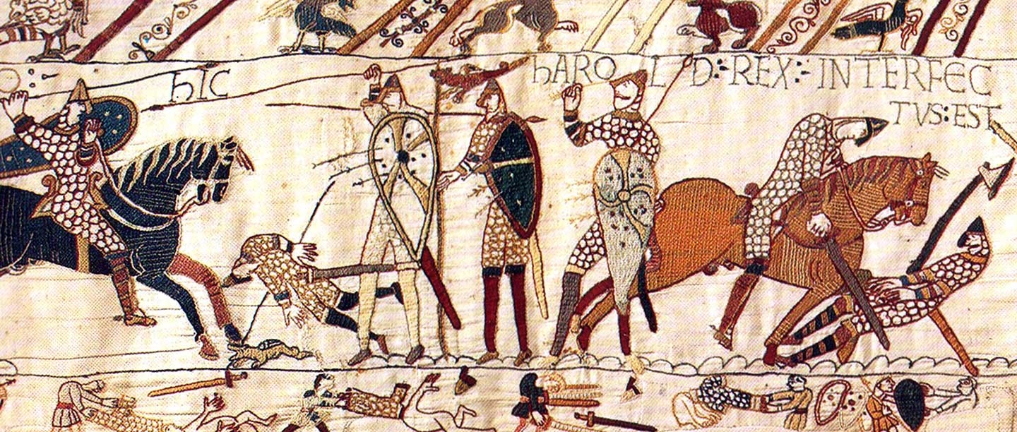 Top image: The scene from the Bayeux Tapestry depicting the death of King Harold of England at the Battle of Hastings (© GL Archive/Alamy)