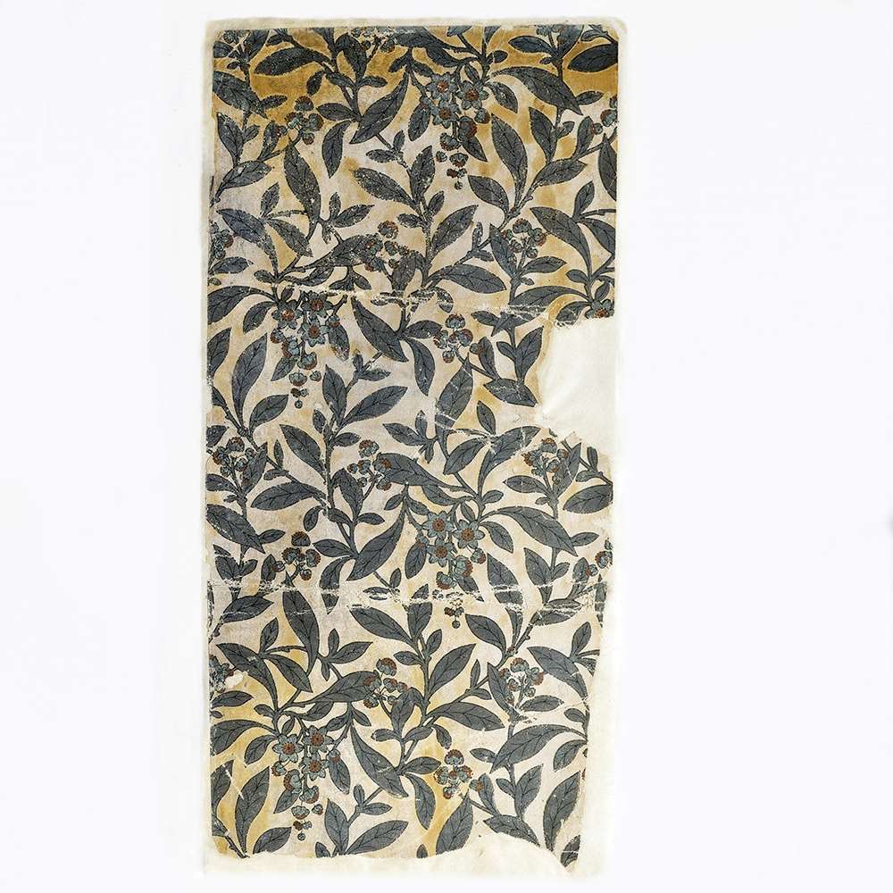 We have been able to identify the wallpaper pattern as ‘Golden Lily’, designed by John Henry Dearle for Morris & Co. The wallpaper is likely to have been hung when this room was made into a separate room from the dining room in 1912. However, it may well have been applied earlier as it was produced from 1897.