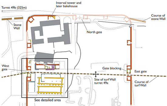 Hadrian’s Wall abutted the northern corners of the fort, and stretches of it can still be seen to the east and west.