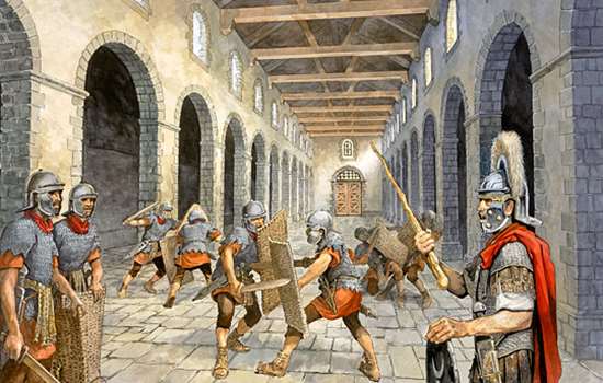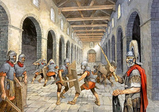 On the east wall there are traces of many repairs and rebuildings. Several of the towers around the fort were later used as bakehouses, and typical circular Roman ovens can be seen.