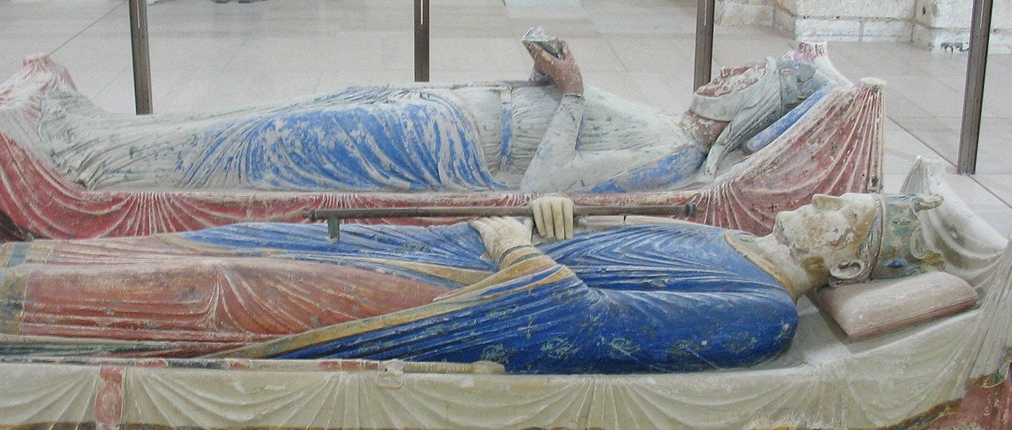 Top image: the effigies of Henry II and Eleanor of Aquitaine at Fontevraud Abbey, near Chinon, in the former duchy of Anjou