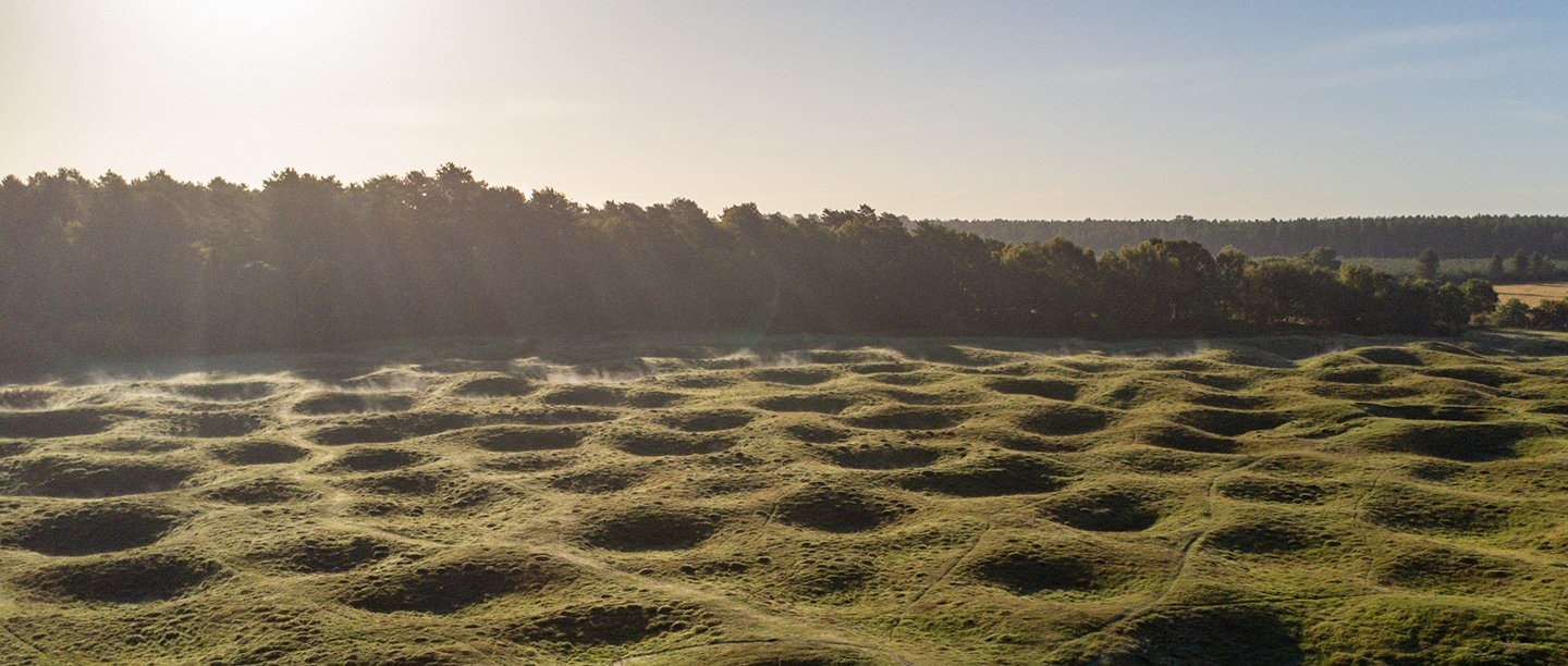 Description of Grime’s GravesRead a description of Grime’s Graves – the dips and humps of the earthworks here represent the visible remains of 433 Neolithic mines and pits.