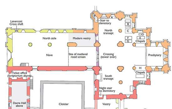Download this PDF plan of Lanercost Priory to discover how its buildings have developed over time.